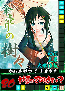 MCさんが樹々を紹介してくださってました!しかも、声!台詞!幼さ混じりの姉御ボイスがフィットしまくりですヨ!?ありがとうございました!永久保存します♪ カードゲーム カウンタの回りが速いなと初めてアクセス解析を眺めてみましたら…… 色々からリンクして戴けてる!?挙句の果てに取り上げられてる!ぁりがとぅござぃますぅ。クロジさんのブログの"キャラブログが気になる"が気になる……。凄く便利そー。 で、はい、サプライズされちゃいました!投稿もしちゃいました!作ってらっしゃる方は結構いらっしゃるんですね。気になって調べちゃいましたよ~? まずクロジさん。か……格好良い……! 無氏名さん。テキストが格好良いです! アクエスさん。処方してほしい! 夢幻さん。私もパンダに……! テジマアさん。凄い。絵が透けてる! 青凪さん。作る為の考察が凄い! 紅掛さん。同じカードパーツなのに幻想的~。 アルマさん。此方はまだカードにはされていない様子。 そしてこちら…… 既出でしたorz 時間がないのでココまで! ブログを見て回ったら書きたい事がたくさんできました♪ PR |